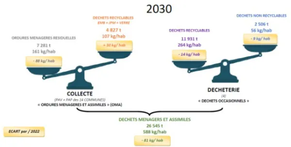 Atteindre une baisse de la quantité de DMA produits de plus de 80 Kg/hab. en 6 ans