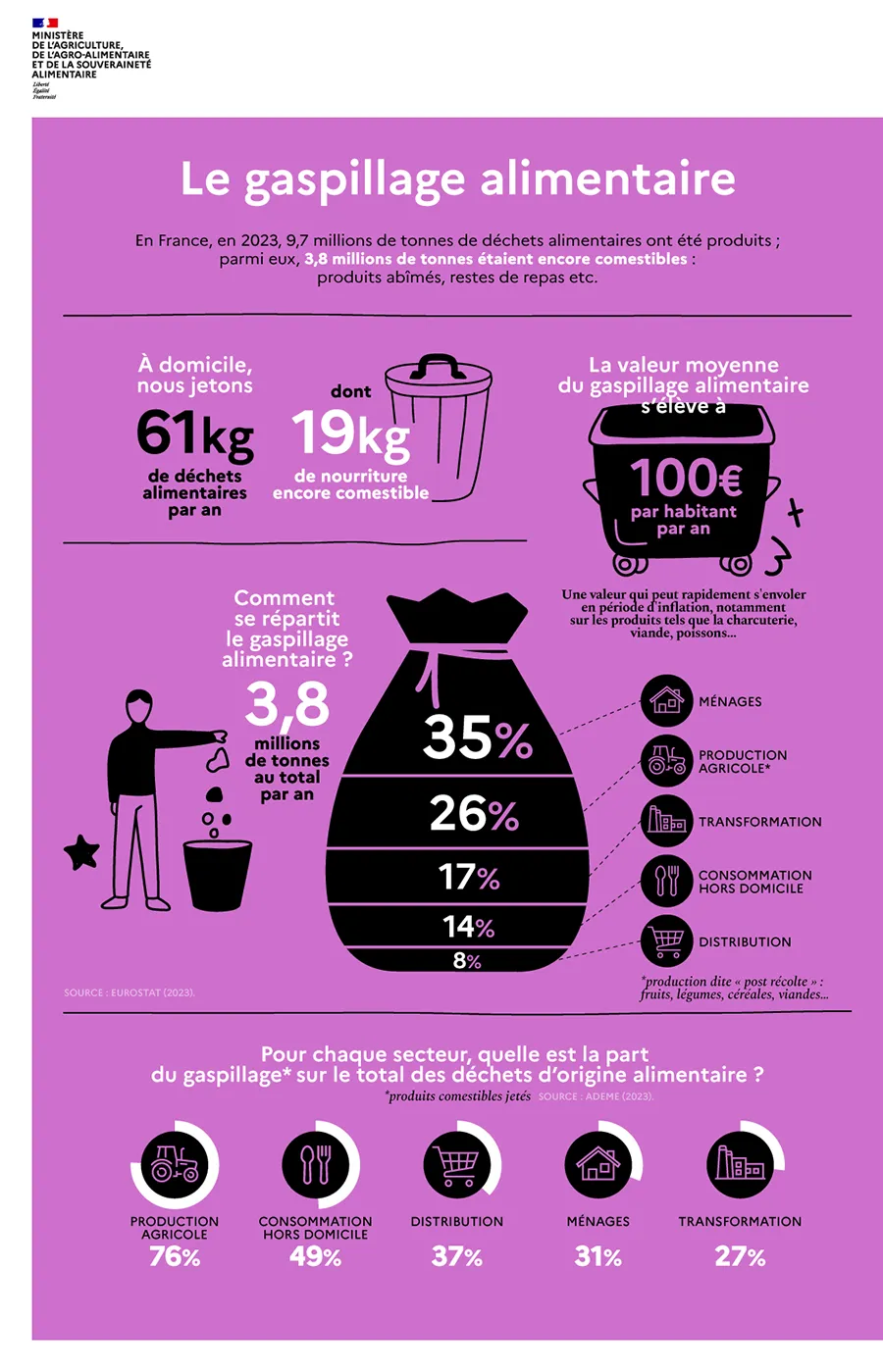 En France, le coût du gaspillage alimentaire est estimé entre 100 et 160 euros par an et par personne.